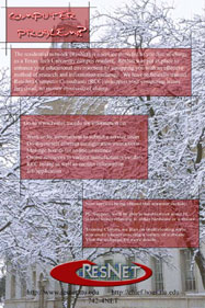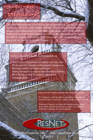 2001 – Once done with the logo, it was time for some advertising. These are the fruits of my labor. Initially I started with the fire background logo, but it was decided that I go ahead and make different background images for different areas of campus. This shows off my beginning Photoshop abilities: using layers, layer blending, and manipulating files for print.